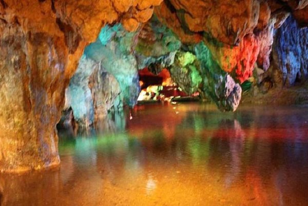 照片二:玉華洞里五光十色的景致
